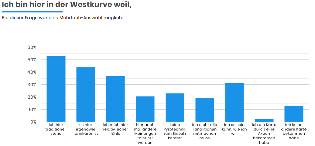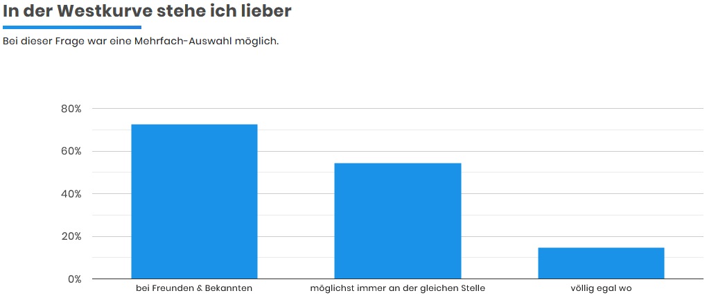 Ziel der Umfrage war es zu verstehen, wie sich die Zuschauer auf der West zusammensetzen und wie Wünsche bzw. Verhalten beim kommendem Umbau sind.